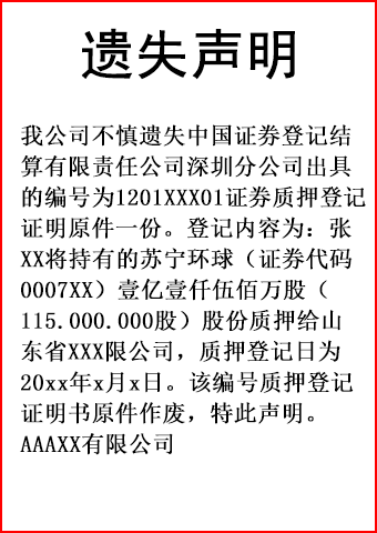 质押登记证明遗失登报