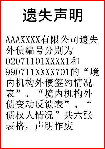 外债签约情况表遗失登报