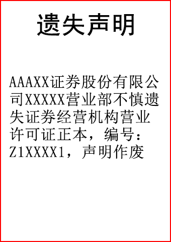 证券经营证遗失登报