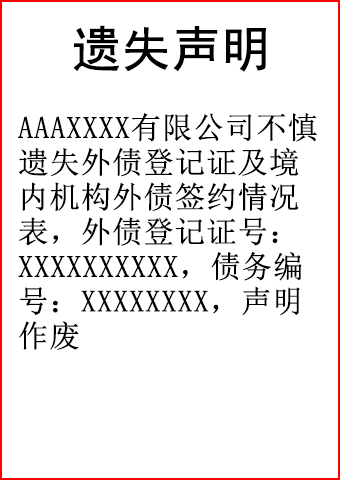 上一篇:外债签约情况表遗失登报下一篇:外汇登记证遗失登报